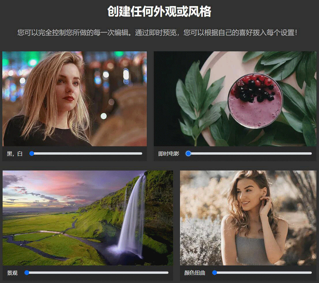 您可以完全控制您所做的每一次编辑。您可以通过即时预览根据自己的喜好拨入每个设置!